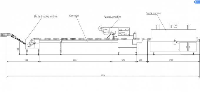 Collective Milk Bottles Automatic Feeding and Shrink Packing Machine connects directly with the production line, the milks will be automatically separated with 4 or 5 pcs in one group when passing through the automatic feeding and separation system , then the 4pcs/group or 5 pcs/group will go to the flow wrapping machine and be shrink packed with POF shrink film.