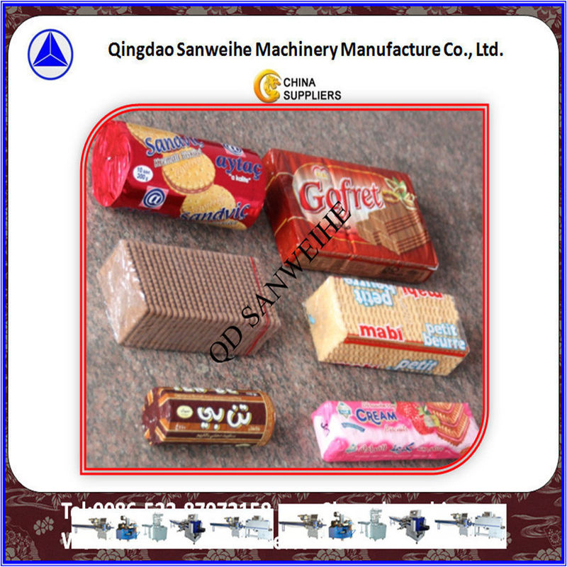 Without Tray Automatic Over wrapping packaging machine is the biscuit wafer packaging machine that carries the different types of products (e.g. round, rectangular, square, elliptical,angular) with the different measurements by the help of its transporter and realizes packaging in the envelope form(End-folding type) by wrapping from above and sticking from the edges.