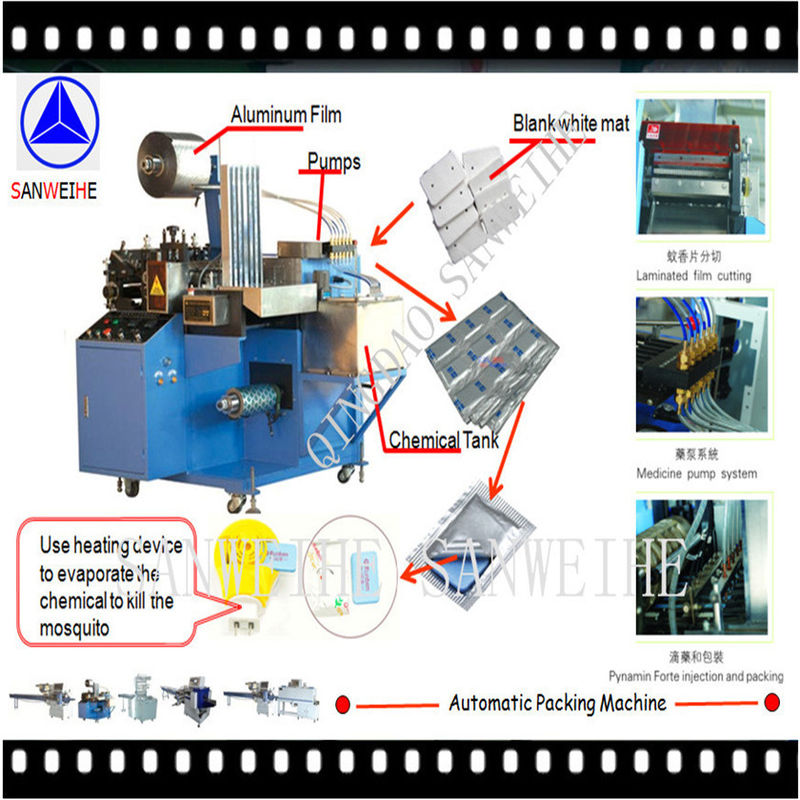 Our packaging machine is suitable for packaging mosquito mat. It is superior quality and timely delivery. The machine includes a complete production line from liquid dozing to strip packaging the mats and cutting the mat strips.The Packaging machine absorbes all other machine advantages and deleting their shortages. Packaging machine is with high speed and accurate liquid injection.