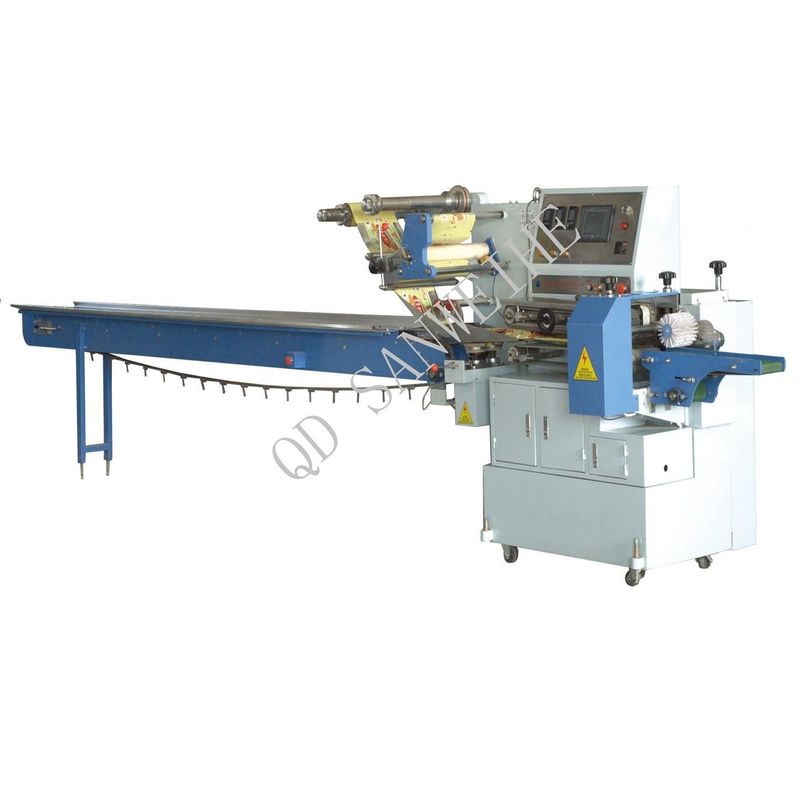 Flow Wrap Packing Machine is a kind of flow wrapping machinery, specially designed for packing products like biscuits, bread, candy, hardware, etc. This system is composed of feeding, main sealing, cutting, output conveying, and it can finish the whole packing procedure automatically. The structure of this flow wrap packing system is of stainless steel, which makes it durable and reliable. With a maximum film width of 680mm, it can also work with different types of packing materials such as OPP/CPP, OPP/CE, PET/PE, etc. It offers back sealing type and the packing size can be adjusted to L50-300mm, W30-150mm, H5-60mm. This automatic flow wrap packaging machine is widely used in food, pharmaceutical, daily chemical, and other industries.